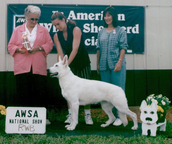 Kyra finished her AWSA Championship title in style, at the Indiana specialty shows on the weekend of October 25 and 26, 1997. On the way to her title, she garnered 16 points and 3 majors. She is the third AWSA Champion of Record.